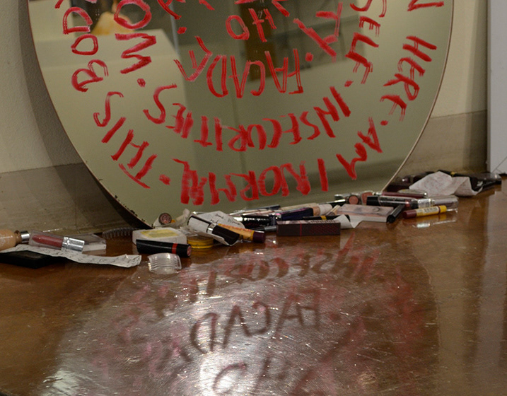 Waste material sits underneath four identical rocks forms. The original rock sits in a pile of dirt from the original location of its river home. It is the lowest height of the four mounds. The second rock form is cast in aluminum and sits on a pile of discarded resin bonded sand which was used to make the casting. Next in height is the iron rock sitting on a pile of slag, which is discarded from the furnace used to create the casting. The highest rock form is cast in bronze and sits on top of a pile of silica sand used to mold the material in ceramic shell. Although the form is identical the material creates a value system. This installation asks why do we value certain materials more than others, and what is the value of material that is considered disposable in art making practice?