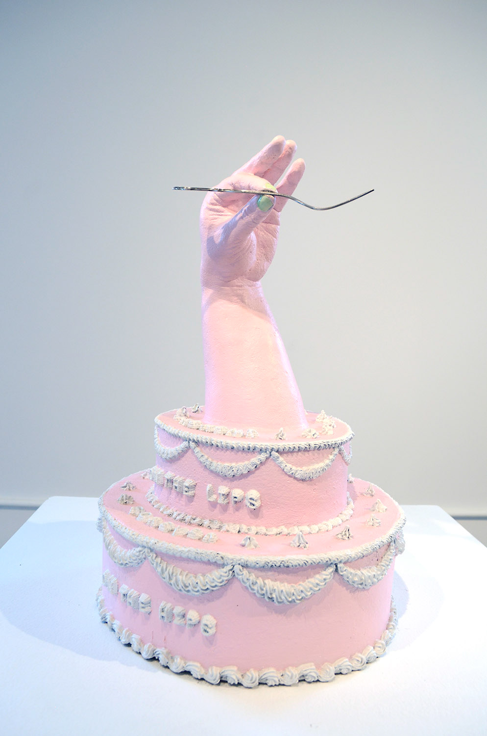 "One Bite Couldn’t Hurt" exposes the insidious ways diet culture imposes morality, self-worth, and bodily autonomy. The phrase "A moment on the lips, forever on the hips"—a mantra of shame disguised as wisdom—is piped onto the surface, embodying the pressure to regulate pleasure through discipline. Diet culture refines not by elevating, but by erasing, dictating that goodness is measured by self-denial and that desire must be curbed to preserve worth. This work interrogates the narratives that cast consumption as a moral failing and the body as a battleground of virtue.